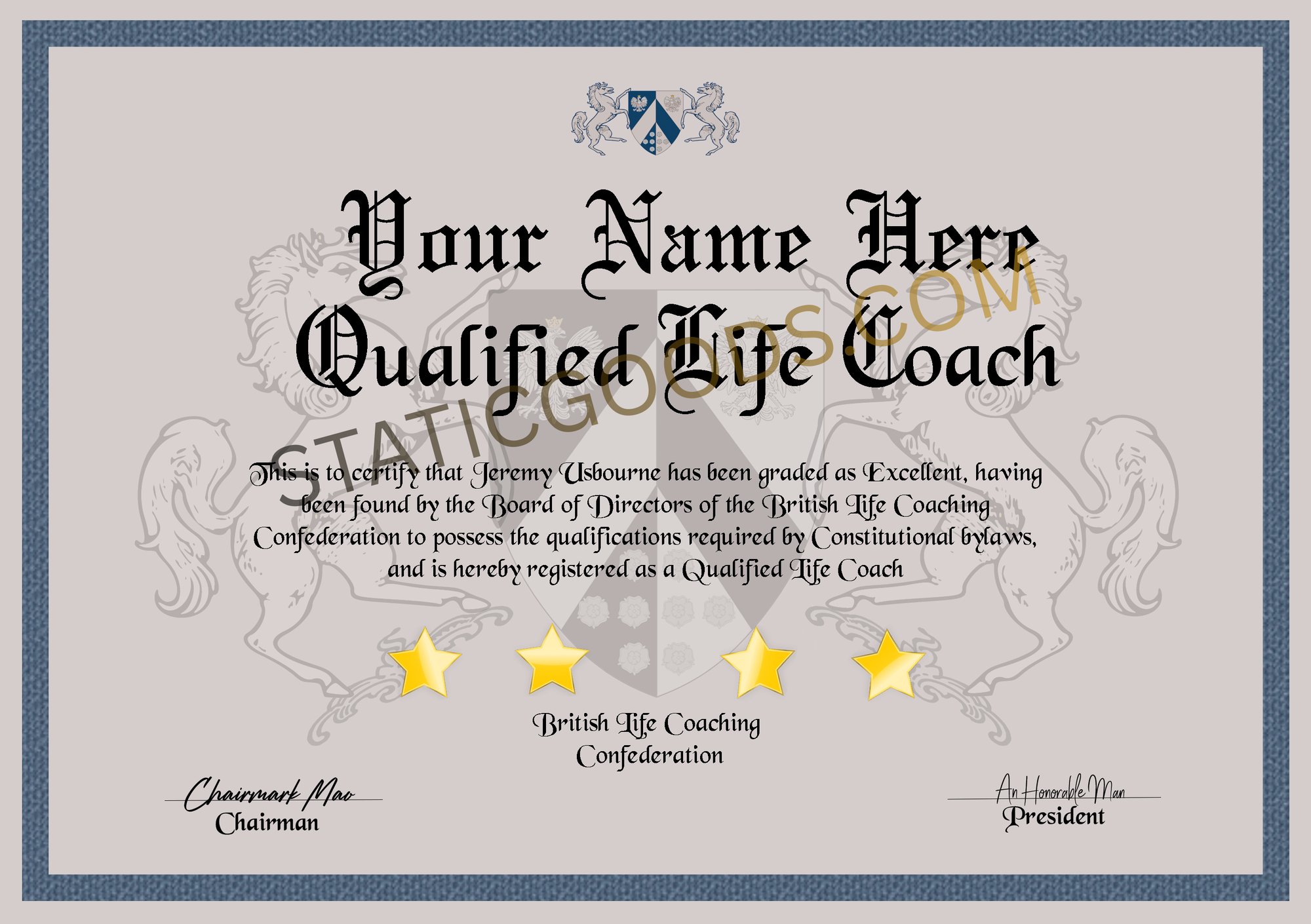 Important: This is a novelty certificate for humorous display and does not confer any legitimate life coaching credentials.