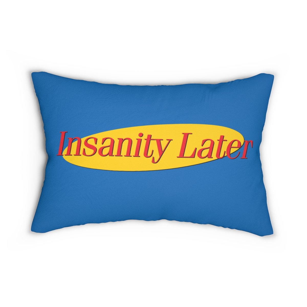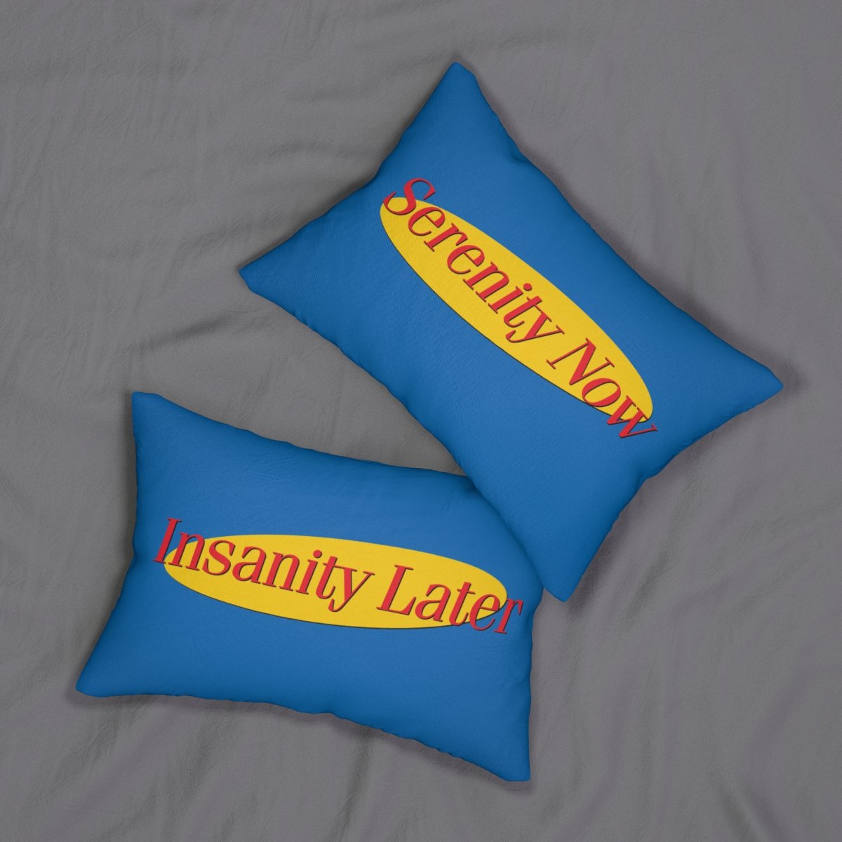 Seinfeld Lumbar Pillow Double Sided Serenity Now Insanity Later Funny TV Gift