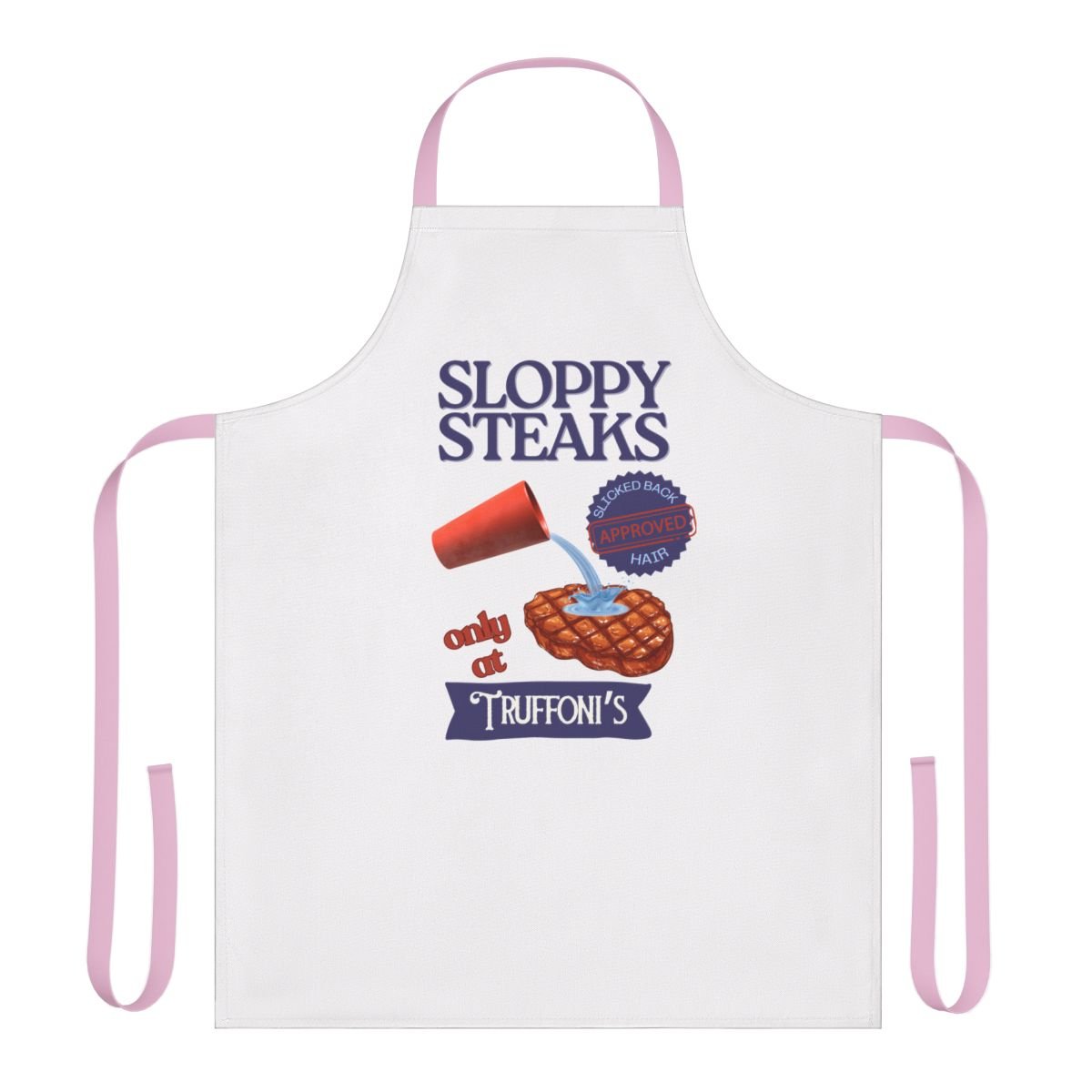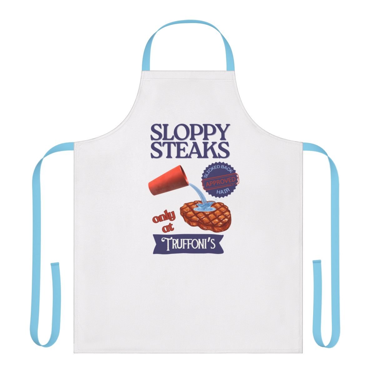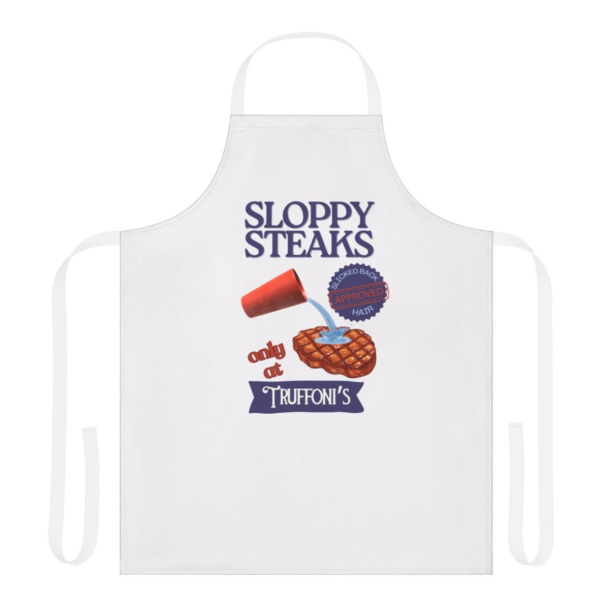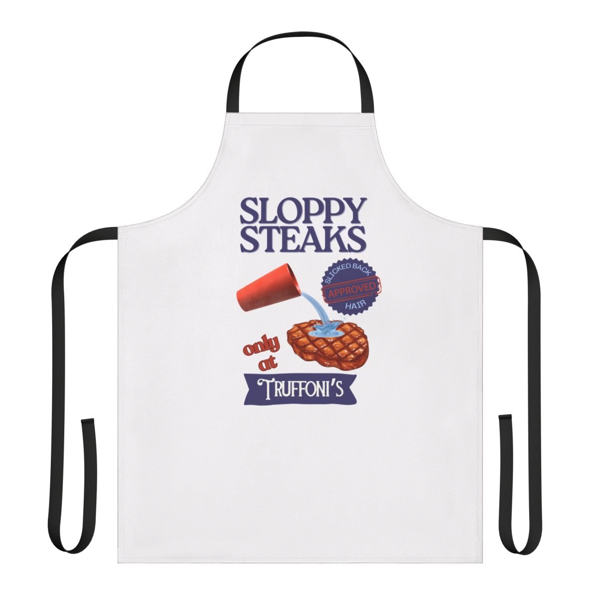 Level up your kitchen or grill game with this retro-inspired Sloppy Steaks apron. Perfect for cooking, grilling, or quoting Tim Robinson while making a delicious mess, it’s both functional and funny. Made from soft, durable polyester canvas with vibrant colors and adjustable straps, it’s a must-have for fans and food lovers alike.